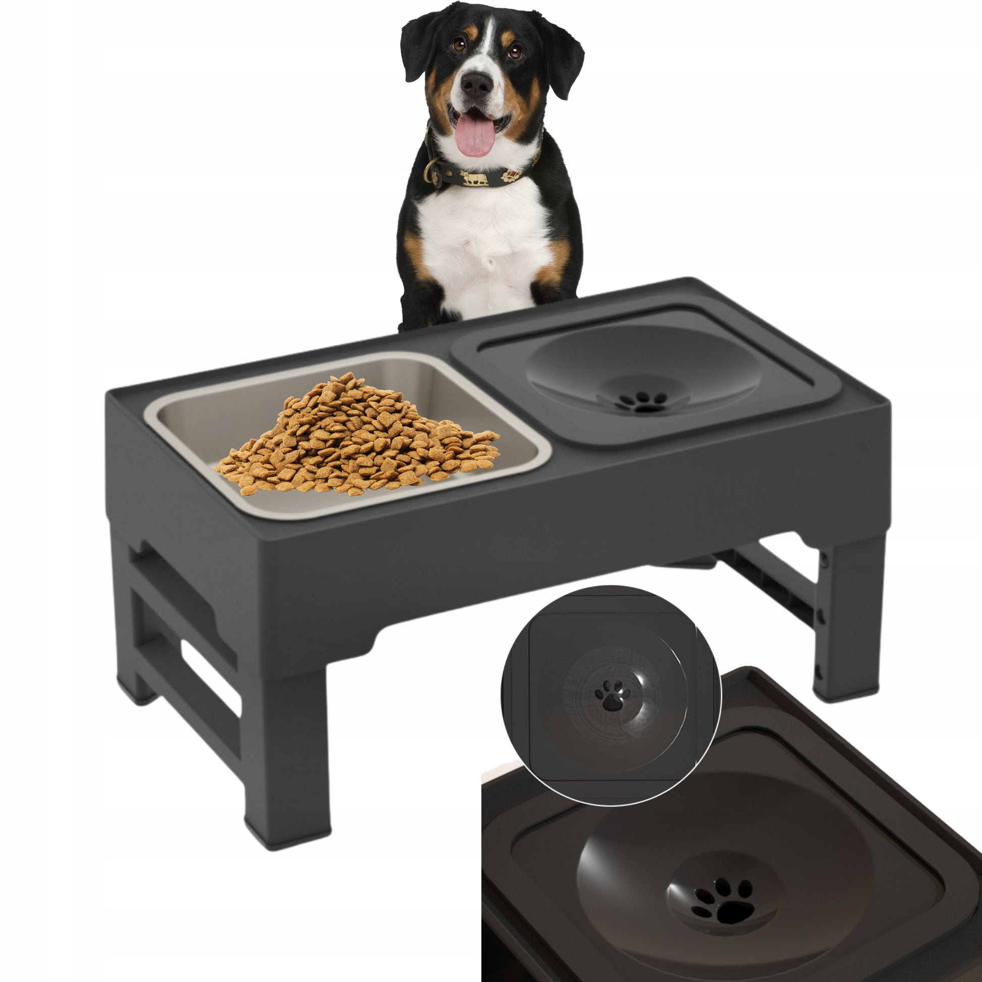 ✅ Regulowana wysokość – Dopasuj wysokość stojaka do wielkości psa, aby wspierać jego zdrową postawę i ułatwić trawienie.